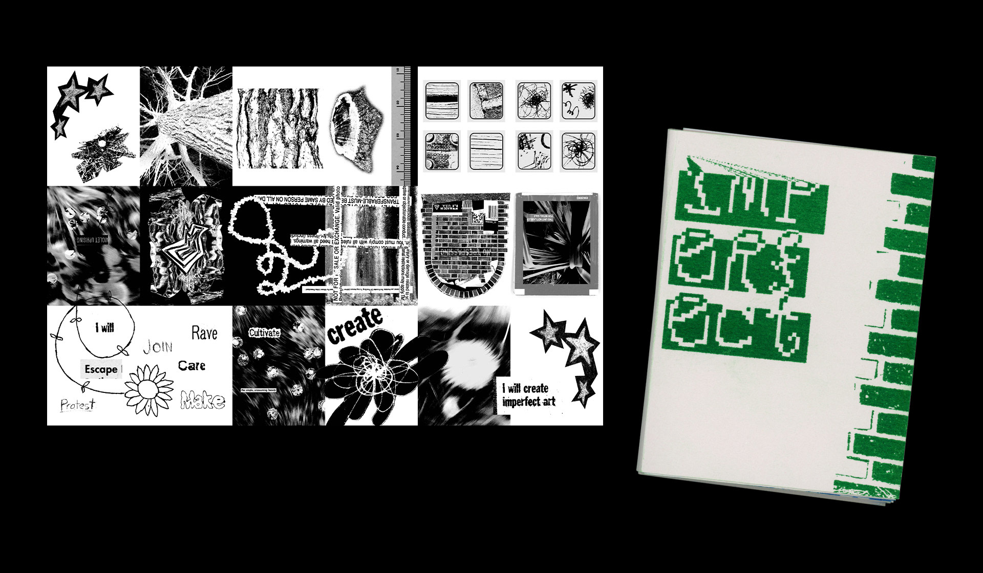 To flip the traditional design process by gathering raw material from the everyday world, uncovering a narrative from these collected assets, and designing a composite piece to express this narrative in an abstract visual form.