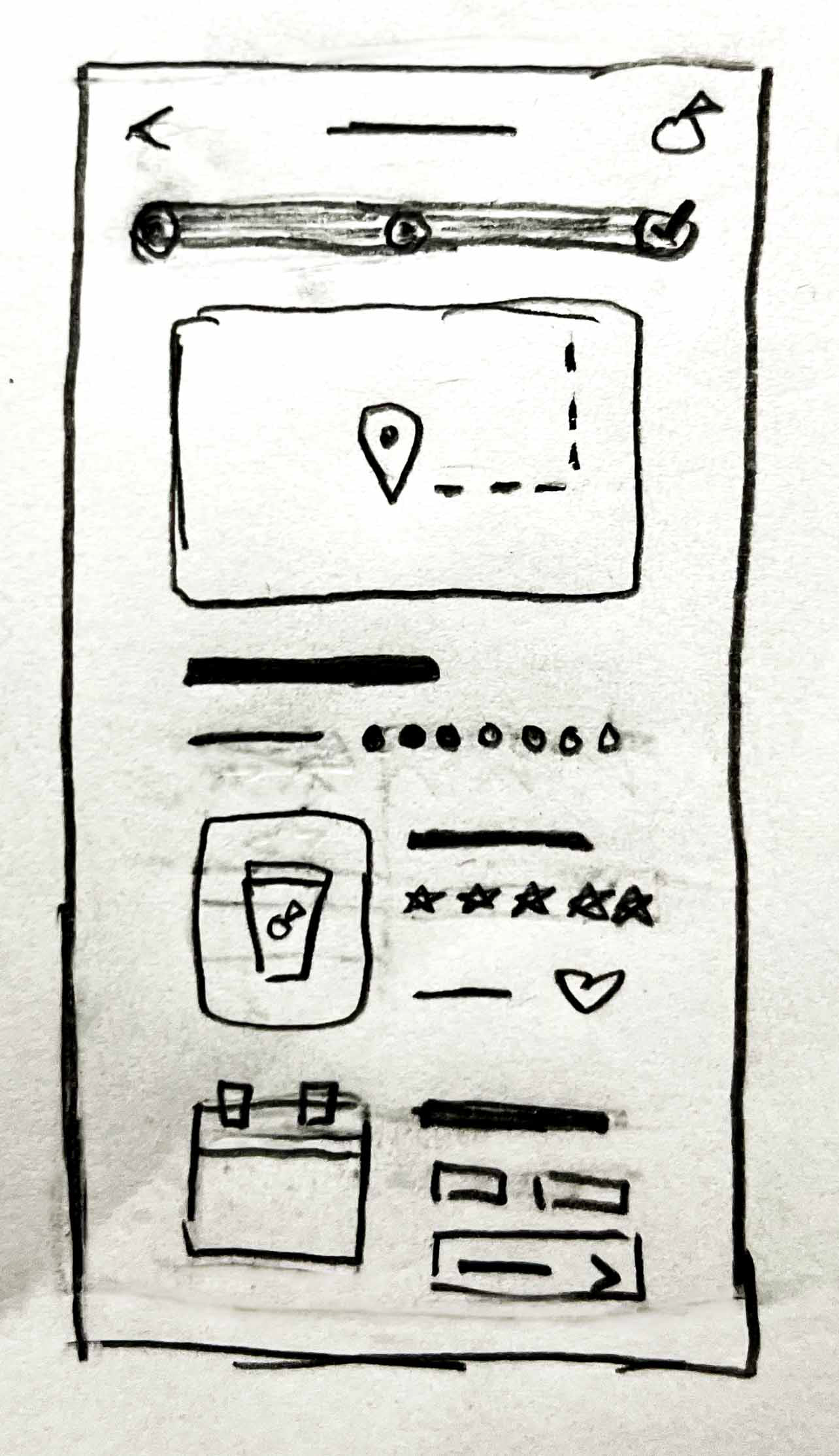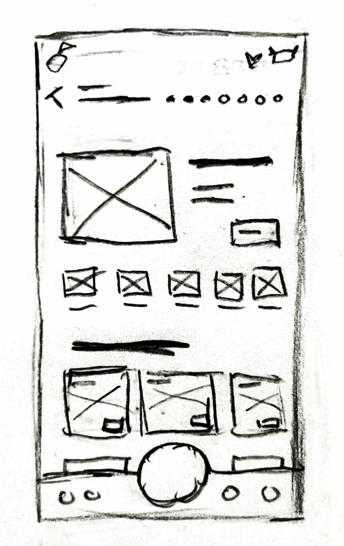I began the visual design of the app by sketching 5 basic screens: Home,